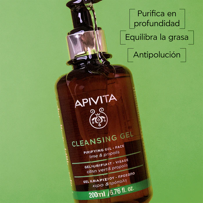 El Apivita Purifying Cleansing Gel Face 200 ml es un limpiador facial suave pero eficaz, desarrollado especialmente para pieles mixtas y grasas. Su fórmula combina propóleo y extractos de cítricos con propiedades antimicrobianas y astringentes, que eliminan impurezas, exceso de sebo y restos de maquillaje sin resecar la piel.