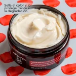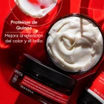 Gracias a su textura cremosa, nutre profundamente, repara el daño causado por procesos químicos y aporta suavidad, fuerza y vitalidad, manteniendo un color vibrante y luminoso por más tiempo.