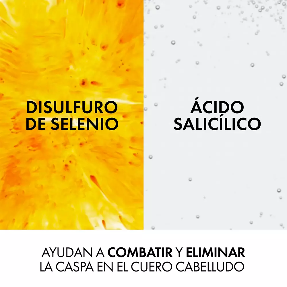 Enriquecido con Disulfuro de Selenio, Ácido Salicílico y Vitamina E, componentes que trabajan en conjunto para purificar el cuero cabelludo y proteger la barrera cutánea.