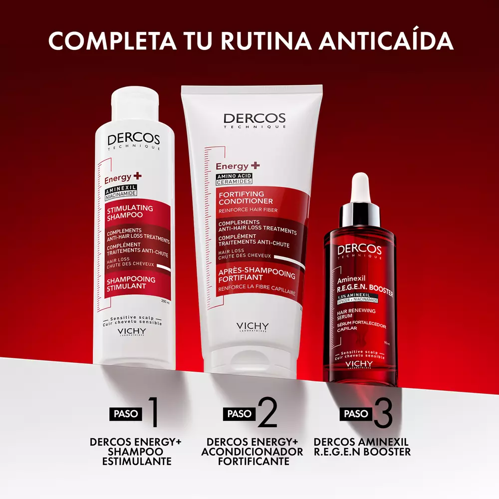 Impulsa la vitalidad de tu cabello con el Vichy Dercos Serum R.E.G.E.N Booster, una fórmula avanzada diseñada para combatir la caída del cabello y estimular un crecimiento más saludable y fuerte. Su innovadora combinación de ingredientes dermatológicos ofrece resultados visibles en 12 semanas.
