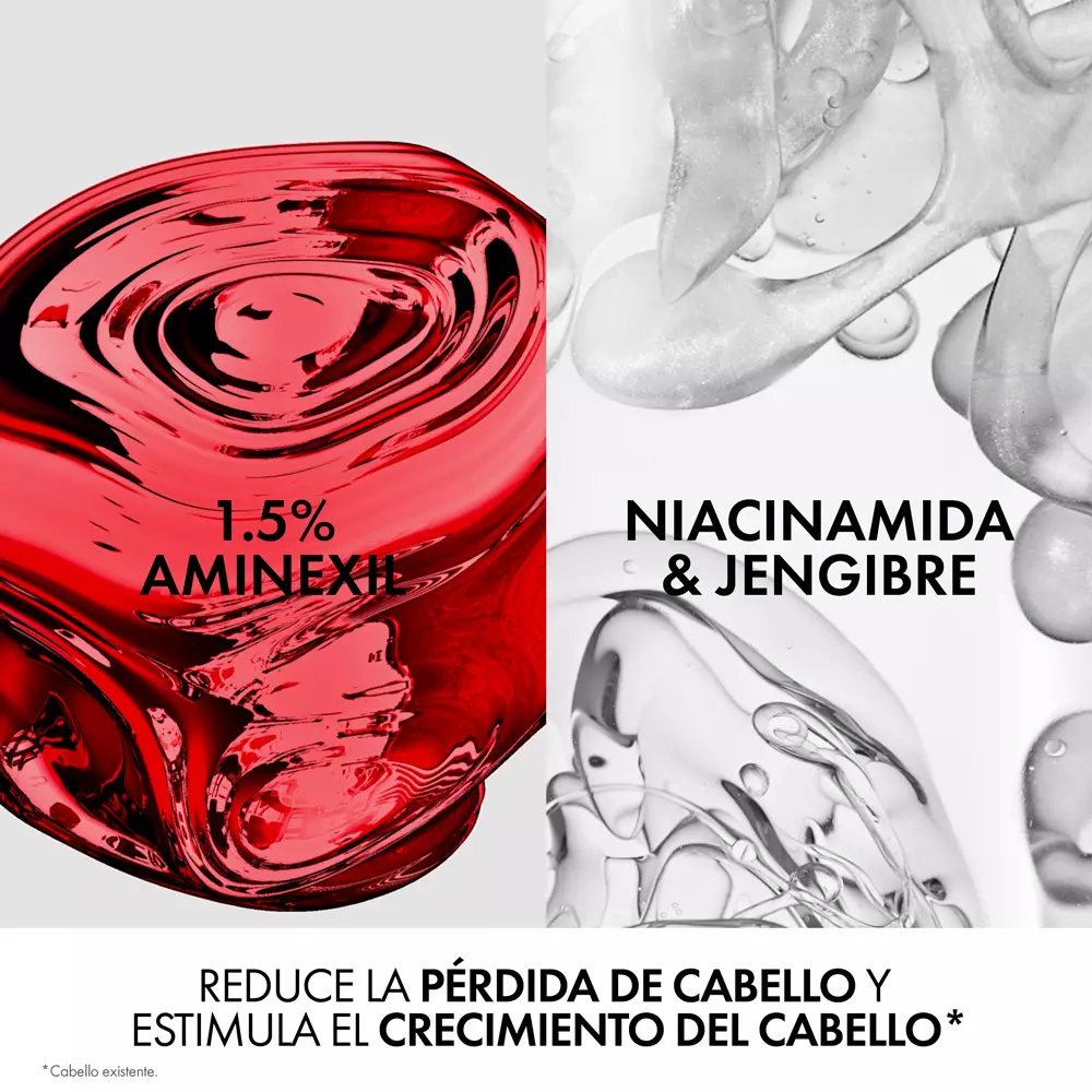 Este sérum cuenta con una potente mezcla de Aminexil, Niacinamida y Jengibre, componentes esenciales para el cuidado capilar avanzado y la protección contra factores externos que debilitan el folículo.