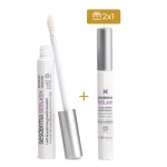 El Kit 2×1 Sesderma Seslash Sérum Activador de Crecimiento de Cejas y Pestañas 5 ml está diseñado para mejorar la apariencia de cejas y pestañas débiles, poco densas o con crecimiento irregular. Su fórmula avanzada combina péptidos biomiméticos, factores de crecimiento, ácido hialurónico y pantenol, que actúan desde la raíz hasta la punta para fortalecer la fibra capilar y potenciar su aspecto natural.
