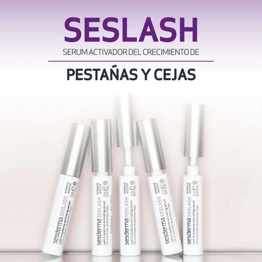 Kit 2×1 Sesderma Seslash Sérum Activador de Cejas y Pestañas 5 ml. Fórmula con péptidos, factores de crecimiento y ácido hialurónico que fortalece, hidrata y aporta densidad natural.