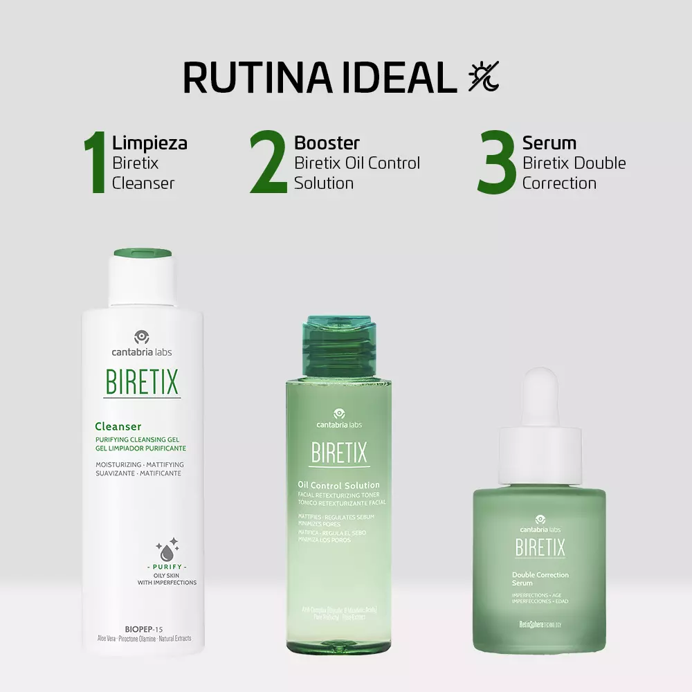 El Biretix Double Correction Serum Imperfecciones es un tratamiento avanzado diseñado para las necesidades de la piel adulta que presenta brillo y textura irregular. Su fórmula exclusiva ayuda a mejorar la apariencia de la piel desde las primeras semanas de uso.