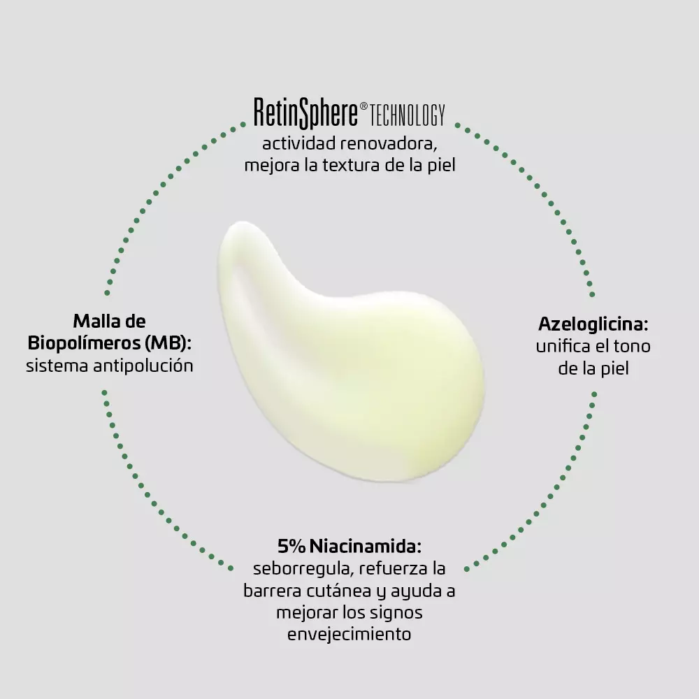 - Tecnología Avanzada: Formulado con RetinSphere® Technology, Niacinamida y Azeloglicina para un cuidado integral de la piel grasa.