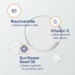 Ayuda a mejorar el tono, la textura y la luminosidad de la piel gracias a la Vitamina C, Niacinamida y Aceite de semilla de girasol.