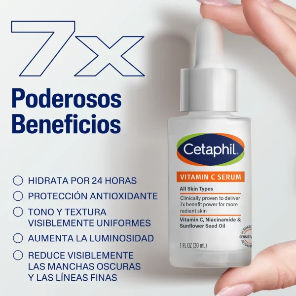 Gracias a su potente fórmula enriquecida con vitamina C estabilizada, el Sérum de Cetaphil protege tu piel de los efectos visibles causados por factores externos como contaminación y exposición diaria al sol. Además, ayuda a unificar el tono, mejora la luminosidad y suaviza visiblemente la textura del rostro, dejándolo con aspecto saludable y juvenil.
