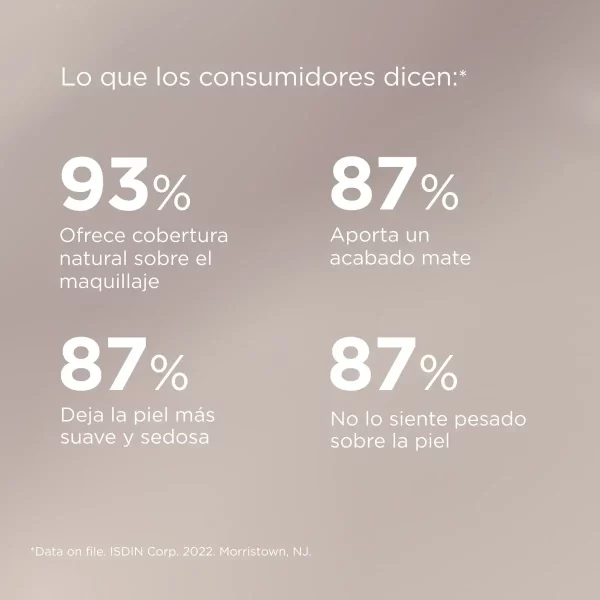 • Ofrece una muy alta protección invisible, aplicable sobre piel maquillada, ideal para retoques. Cobertura ligera.