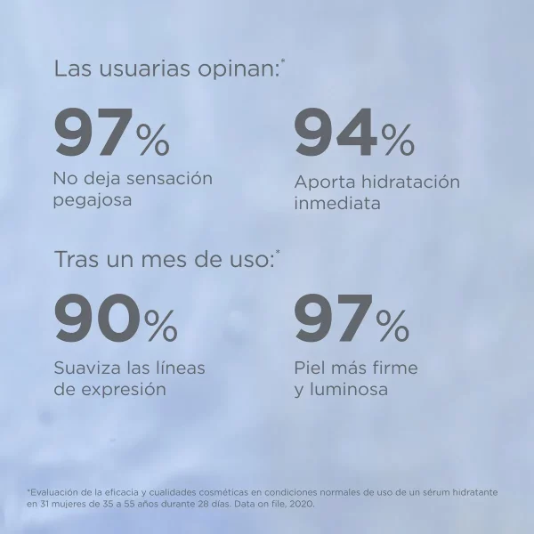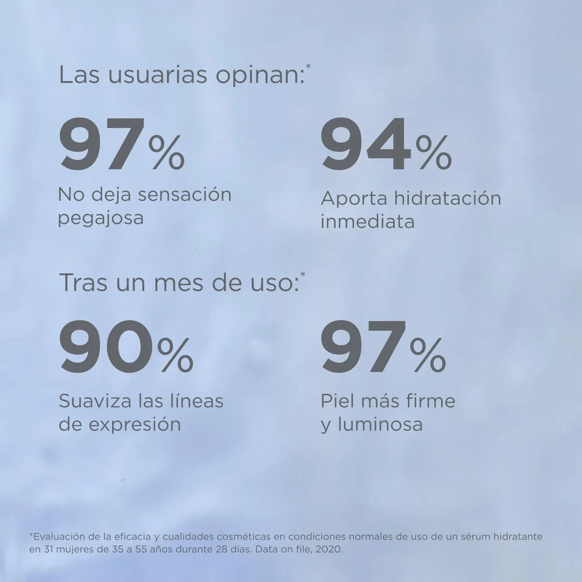 Ideal para pieles que buscan mejorar su nivel de hidratación y prevenir los primeros signos visibles de envejecimiento, este sérum puede usarse a diario y es compatible con otros tratamientos antiedad o despigmentantes.