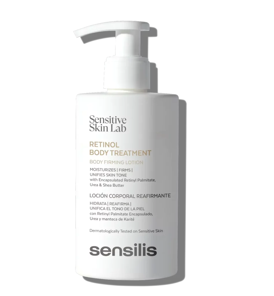 Loción corporal con retinol encapsulado, urea y manteca de karité. Hidrata, reafirma y mejora la elasticidad, unificando el tono y reduciendo manchas y arrugas.