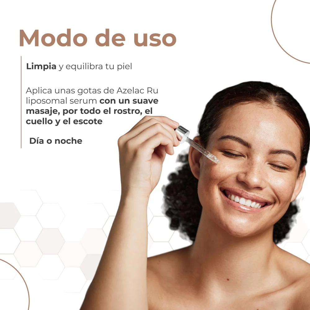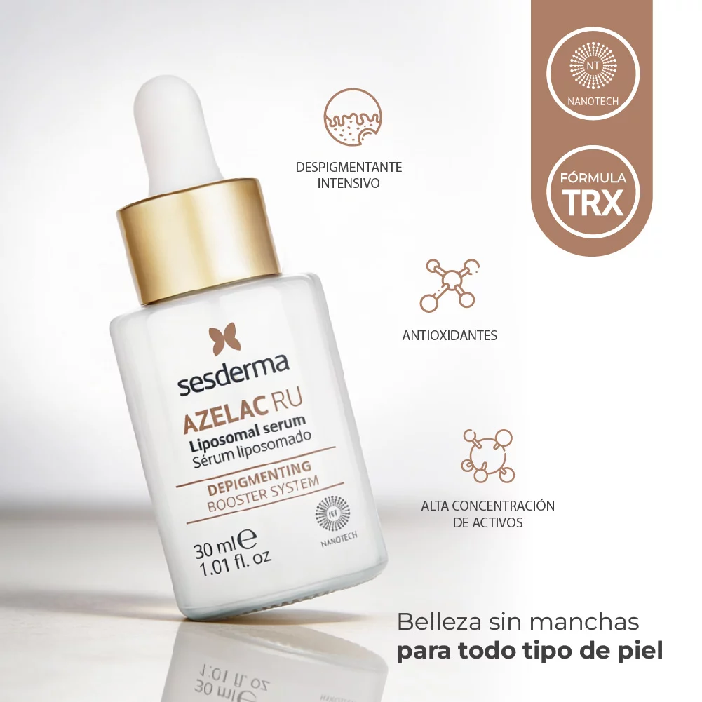 Sesderma Azelac Ru Sérum 30 ml aclara manchas, homogeneiza el tono y aporta luminosidad. Con activos liposomados que actúan directamente sobre la hiperpigmentación y melasma.
