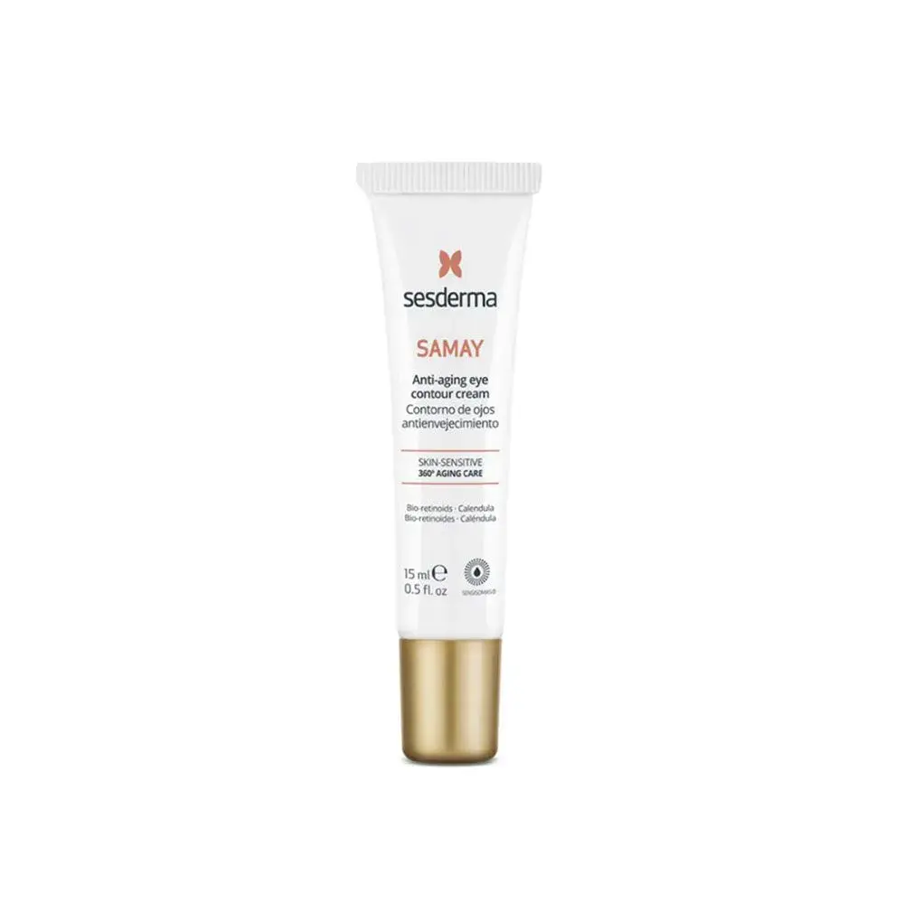 Formulado delicadamente para luchar contra las arrugas perioculares, ojera y bolsas en las pieles sensibles.