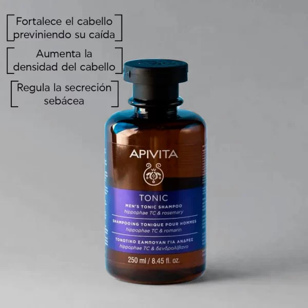 Este kit consta de dos productos capilares que fortalecen y tonifican tu cabello. El Shampoo tonificante Anticaída de 250 ml y un Acondicionador de 150 ml de la línea Apivita Tonic. Está diseñado con ingredientes de origen natural y avalado dermatológicamente. Su complejo patentado Hippophae TC: combina el poder antioxidante del espino amarillo con el efecto tonificante del romero.