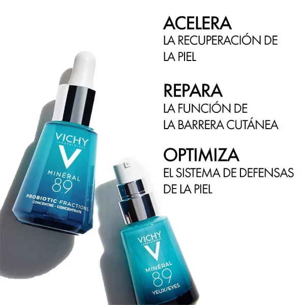 Vichy Minéral 89 Sérum Fracciones Probióticas 30 ml hidrata, fortalece la defensa de la piel y mejora luminosidad, elasticidad y textura. Apto para piel sensible e hipoalergénico.